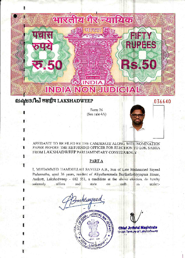 Here you see the first page of the affidavit uploaded by candidate during the nomination.You can mark the area which has the photograph of the candidate and it will get uploaded automatically. Thank you.