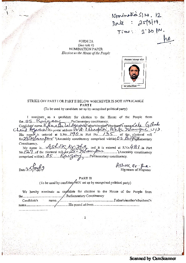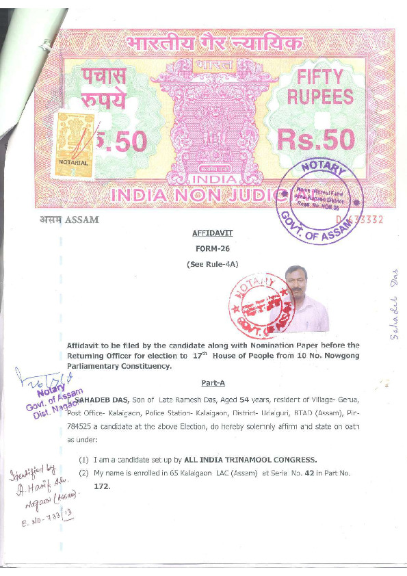 | Assam | Nowgong | Thursday, 18 April 2019 | Sahadeb Das(Affadavit) | Pradyut Bordoloi |