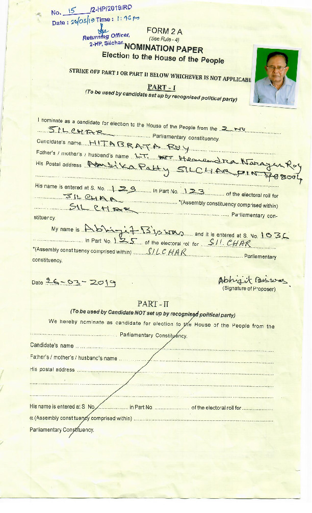 | Assam | Silchar | Thursday, 18 April 2019 | Hitabrata Roy(Affadavit) | Rajdeep Roy |