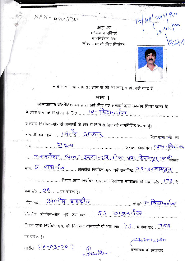 | Bihar | Kishanganj | Thursday, 18 April 2019 | Javed Akhter(Affadavit) | Dr. Mohammad Jawed |
