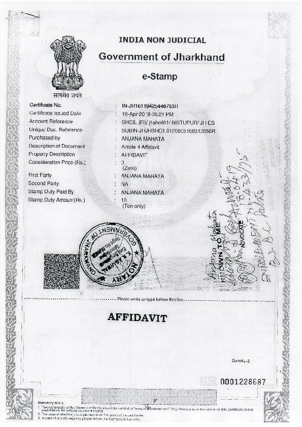| Jharkhand | Jamshedpur | Sunday, 12 May 2019 | Anjana Mahata(Affadavit) | Bidyut Baran Mahato |