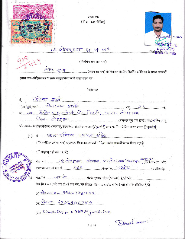 | Jharkhand | Lohardaga | Monday, 29 April 2019 | Dinesh Oraon(Affadavit) | Sudarshan Bhagat |