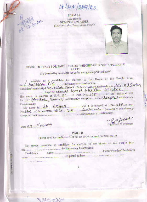 | Odisha | Balasore | Monday, 29 April 2019 | Haji Sk Abdul Istar(Affadavit) | Pratap Chandra Sarangi |