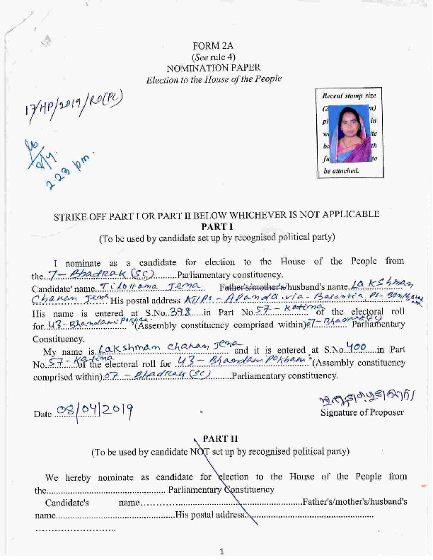 | Odisha | Bhadrak | Monday, 29 April 2019 | Tilottama Jena(Affadavit) | Manjulata Mandal |