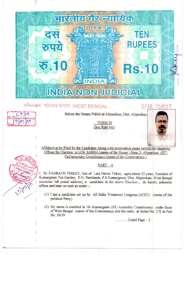 | West Bengal | Alipurduars | Thursday, 11 April 2019 | Dasrath Tirkey(Affadavit) | John Barla |