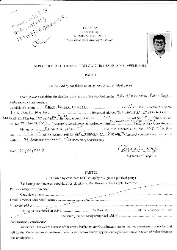 | West Bengal | Bardhaman Purba | Monday, 29 April 2019 | Sunil Kumar Mondal(Affadavit) | Sunil Kumar Mondal |