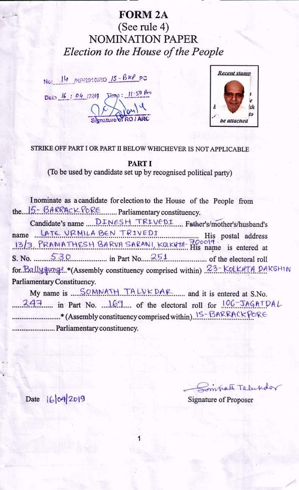 | West Bengal | Barrackpore | Monday, 6 May 2019 | Dinesh Trivedi(Affadavit) | Arjun Singh |