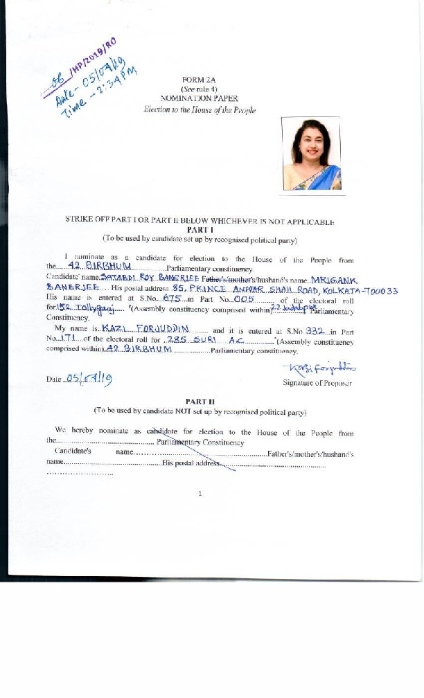 | West Bengal | Birbhum | Monday, 29 April 2019 | Satabdi Roy (banerjee)(Affadavit) | Satabdi Roy |
