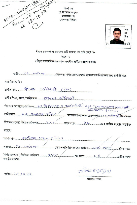 | West Bengal | Tamluk | Sunday, 12 May 2019 | Dibyendu Adhikari(Affadavit) | Adhikari Dibyendu |