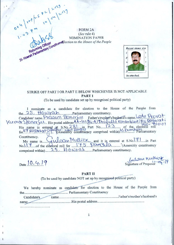 | West Bengal | Howrah | Monday, 6 May 2019 | Prasun Banerjee(Affadavit) | Prasun Banerjee |