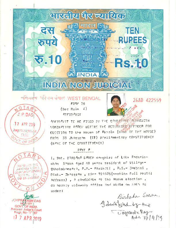 | West Bengal | Jhargram | Sunday, 12 May 2019 | Birbaha Saren(Affadavit) | Kunar Hembram |