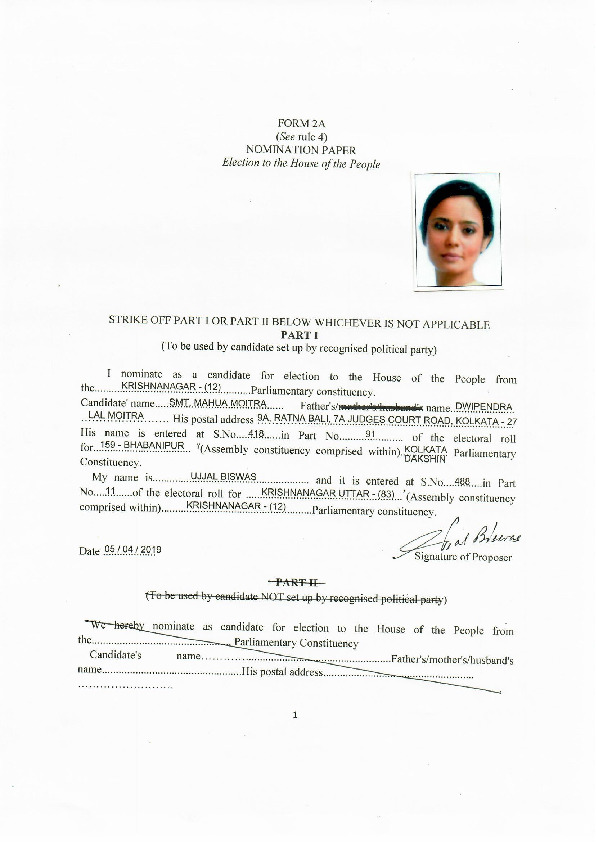 | West Bengal | Krishnanagar | Monday, 29 April 2019 | Mahua Moitra(Affadavit) | Mahua Moitra |
