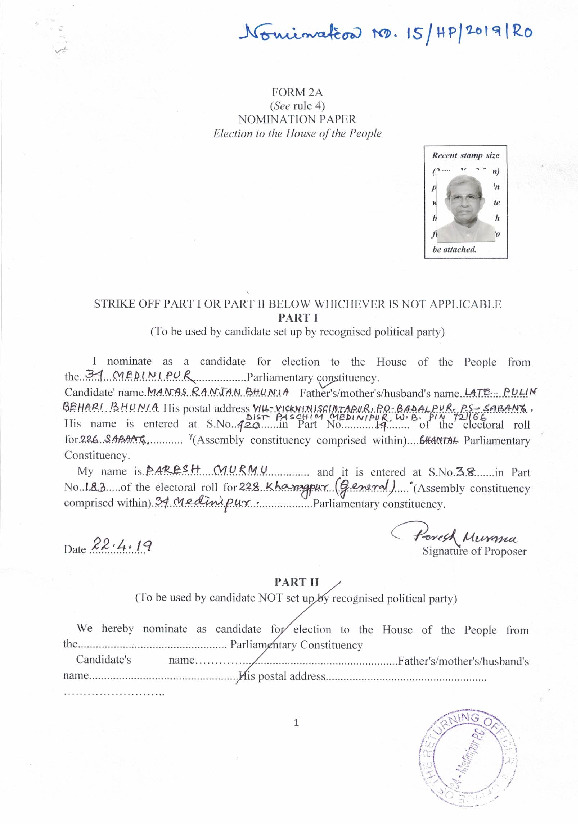 | West Bengal | Medinipur | Sunday, 12 May 2019 | Manas Ranjan Bhunia(Affadavit) | Dilip Ghosh |