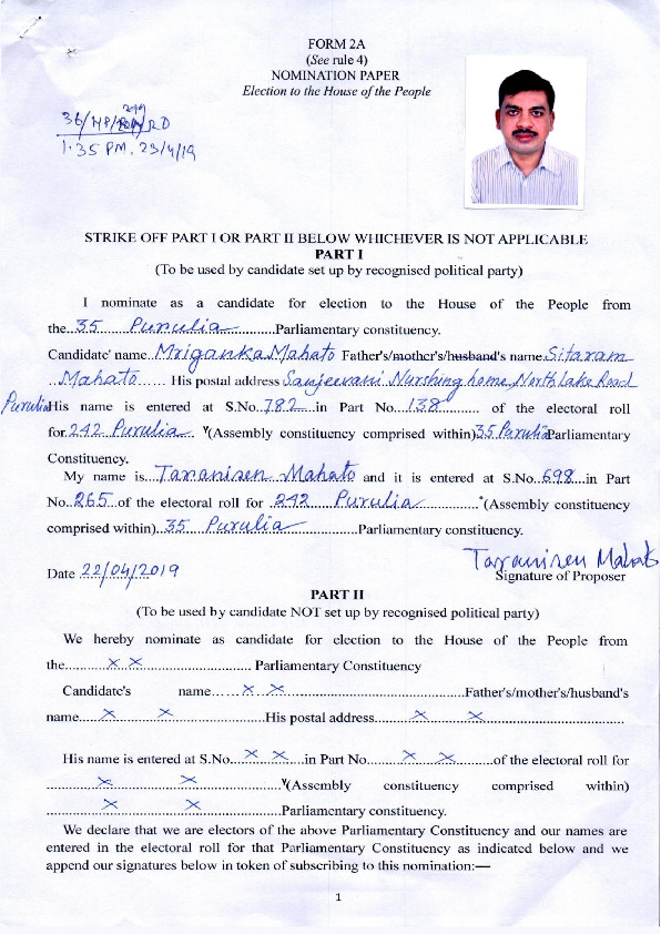 | West Bengal | Purulia | Sunday, 12 May 2019 | Mriganka Mahato(Affadavit) | Jyotirmay Singh Mahato |