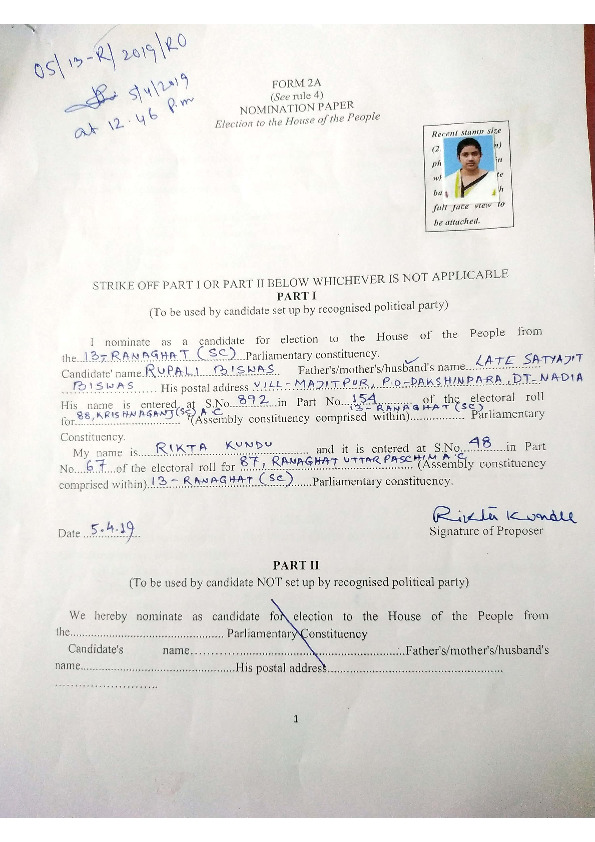 | West Bengal | Ranaghat | Monday, 29 April 2019 | Rupali Biswas(Affadavit) | Jagannath Sarkar |