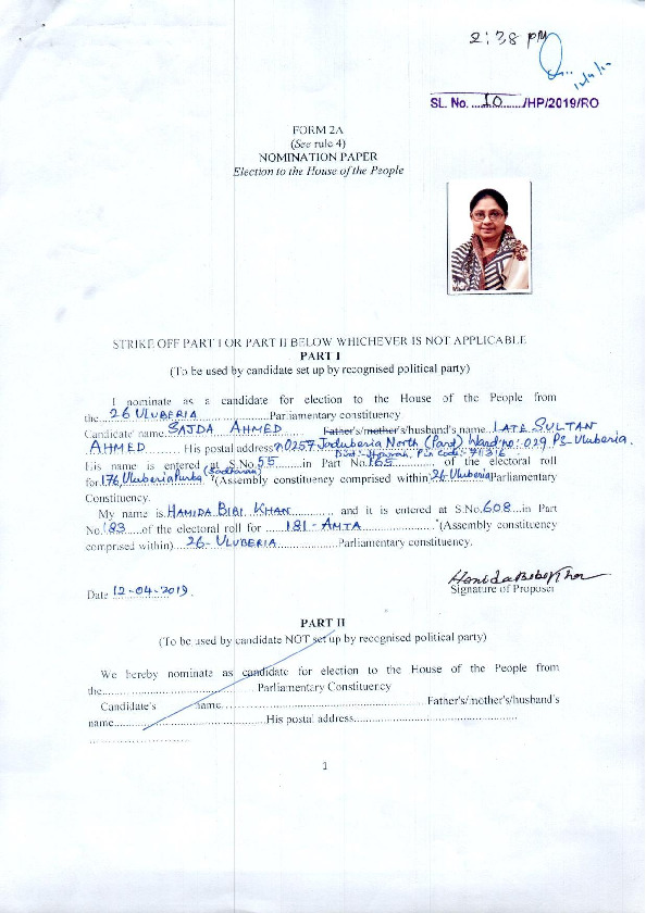| West Bengal | Uluberia | Monday, 6 May 2019 | Sajda Ahmed(Affadavit) | Sajda Ahmed |