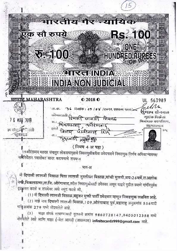 | Maharashtra | Amravati | Thursday, 18 April 2019 | Mohod Panchshila Vijay(Affadavit) | Navnit Ravi Rana |