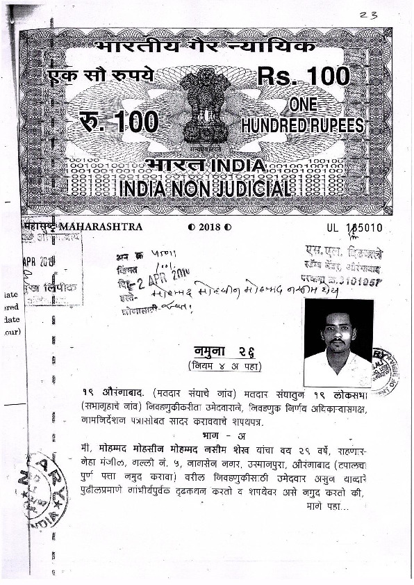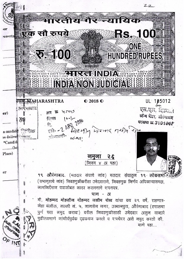 | Maharashtra | Party Name | Tuesday, 23 April 2019 | Mohammad Mohasin(Affadavit) | Imtiaz Jaleel Syed |