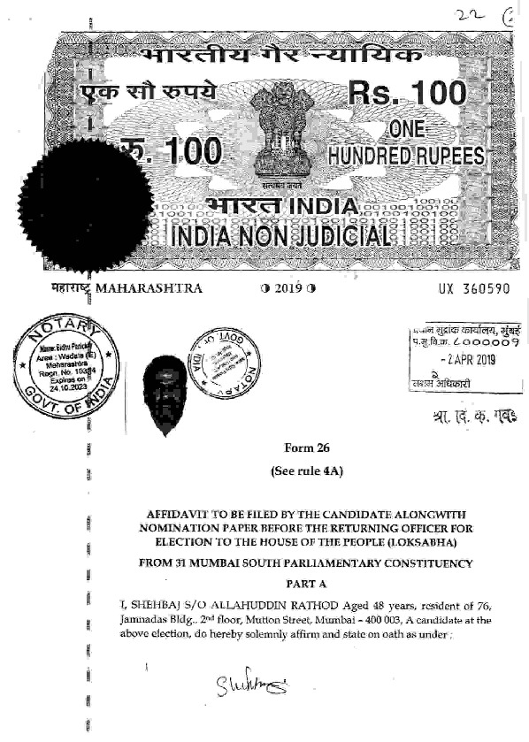 | മഹാരാഷ്ട്ര | Mumbai South | Monday, 29 April 2019 | Shehbaj Rathod(Affadavit) | Arvind Ganpat Sawant |