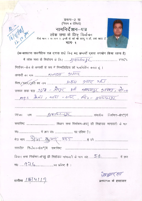 | ബിഹാർ | Muzaffarpur | Monday, 6 May 2019 | Nandan Kumar(Affadavit) | Ajay Nishad |