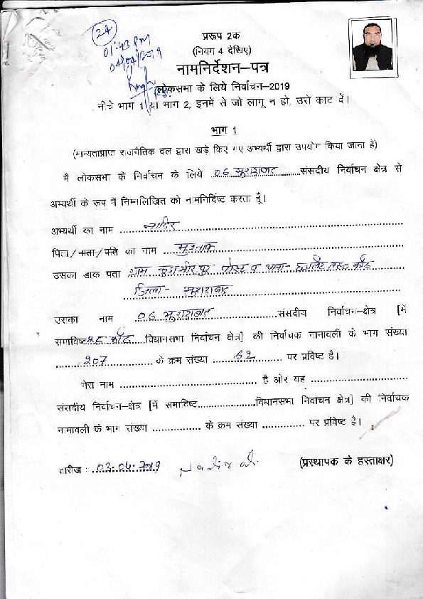 | ഉത്തർപ്രദേശ് | Domariyaganj | Sunday, 12 May 2019 | Mohammad Irfan(Affadavit) | Jagdambika Pal |