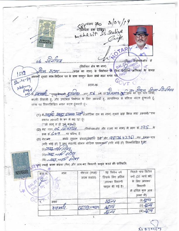 | ഹരിയാണ | Sonipat | Sunday, 12 May 2019 | Mahaveer(Affadavit) | Ramesh Chander Kaushik |