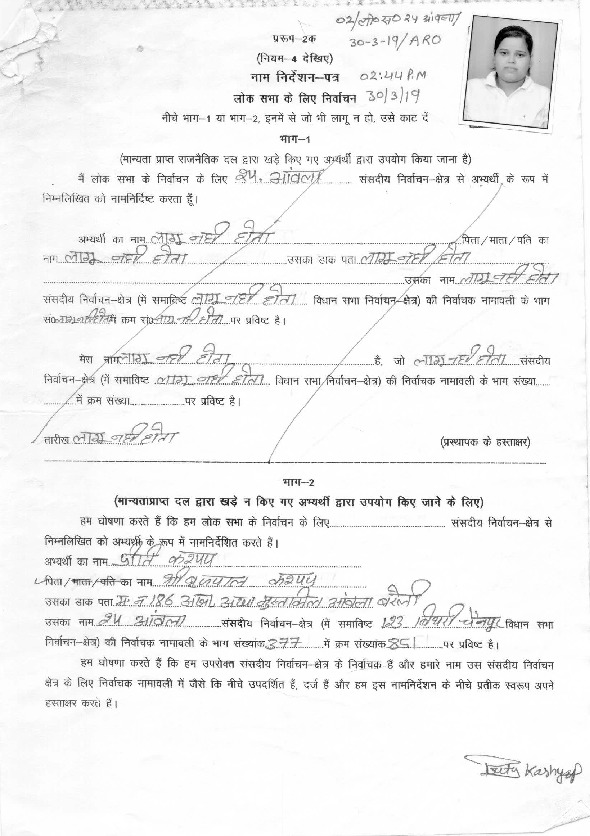| ഉത്തർപ്രദേശ് | Aonla | Tuesday, 23 April 2019 | Priti Kashyap(Affadavit) | Dharmendra Kashyap |