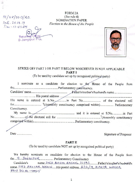 | പശ്ചിമ ബംഗാൾ | Jangipur | Tuesday, 23 April 2019 | Syed Qasim Rasool Ilyas(Affadavit) | Khalilur Rahaman |