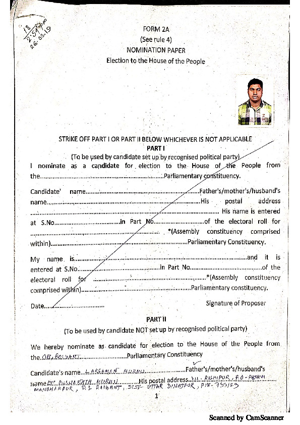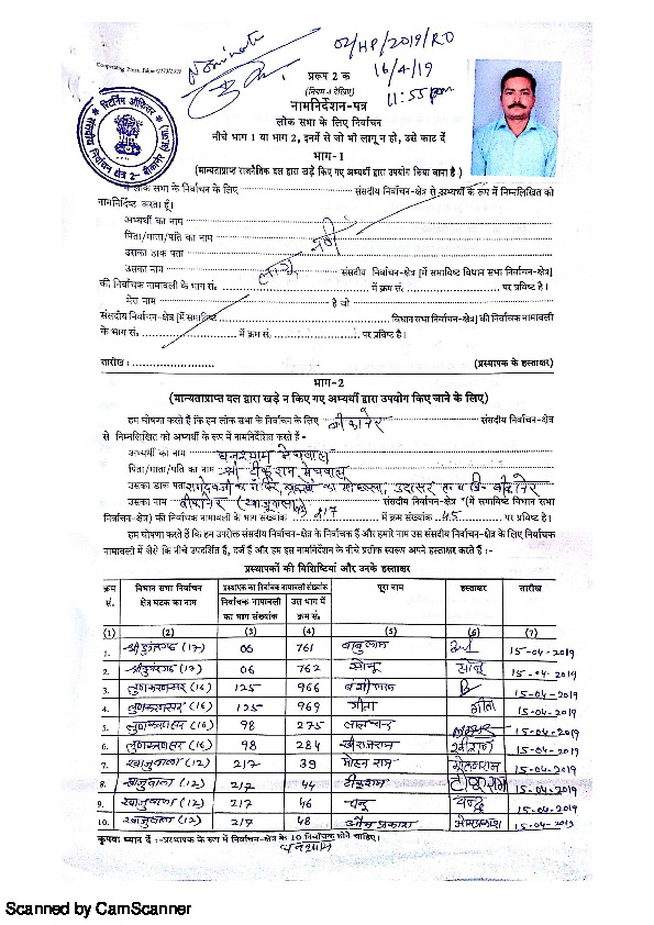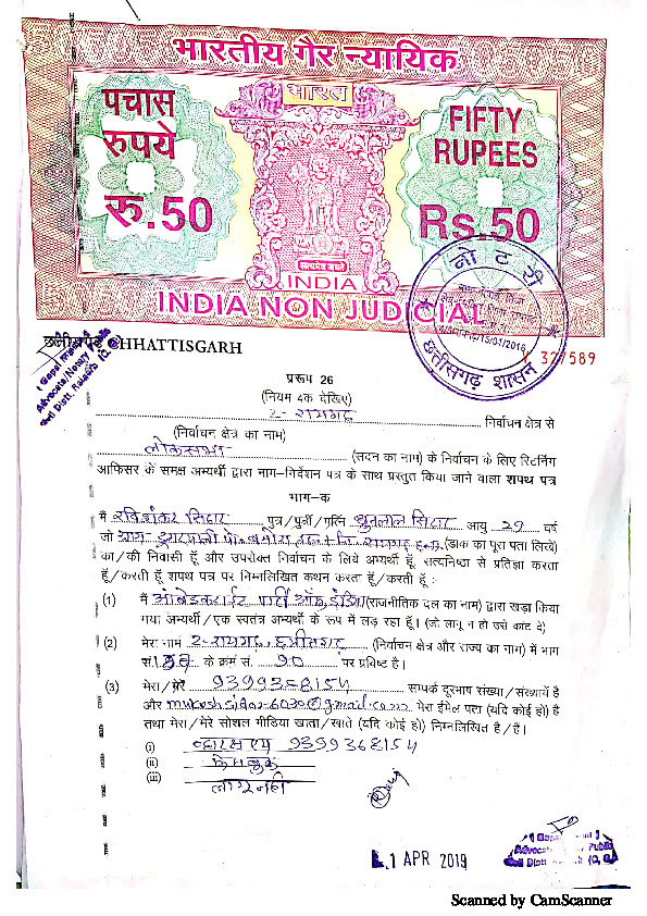 | சத்தீசுகர் | ராஜ்நந்தகாவுன் | Thursday, 18 April 2019 | Baidya Shekhu Ram Verma (guruji)(Affadavit) | Santosh Pandey |