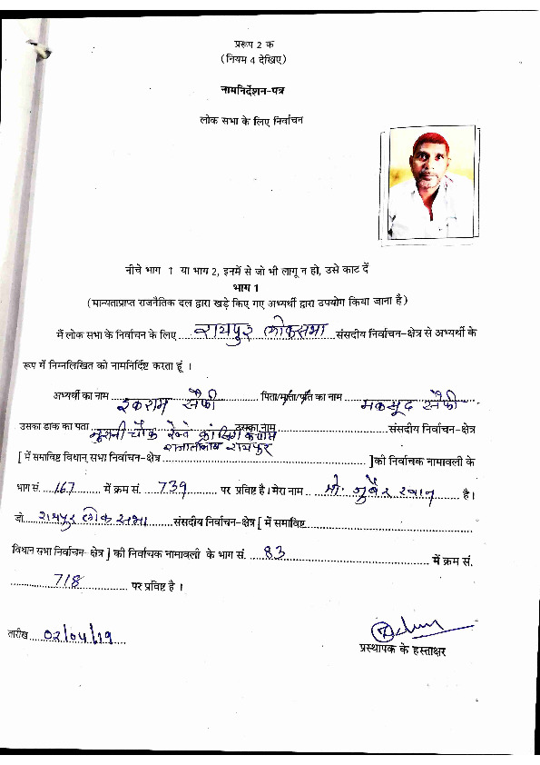 | சத்தீசுகர் | ராய்ப்பூர், சத்தீஸ்கர் | Tuesday, 23 April 2019 | Ikram Saifi(Affadavit) | Sunil Kumar Soni |