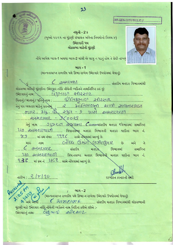 | குசராத்து | Ahmedabad West | Tuesday, 23 April 2019 | Vedubhai Sirasat Kautikbhai(Affadavit) | Dr. Kirit P. Solanki |