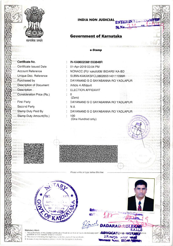 | கருநாடகம் | பீதர் | Tuesday, 23 April 2019 | Dayanand(Affadavit) | Bhagwanth Khuba |