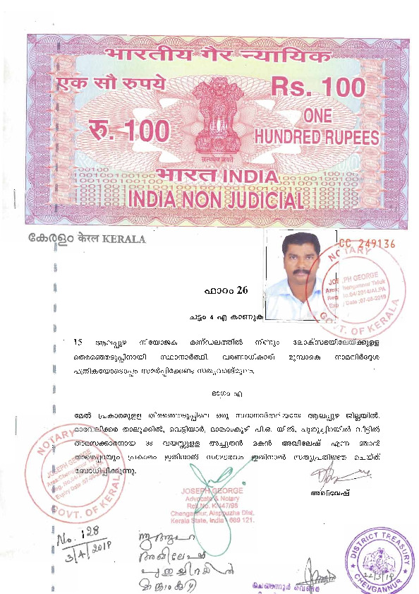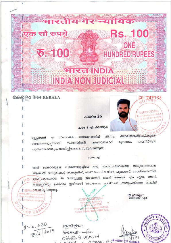 | கேரளம் | ஆலப்புழா | Tuesday, 23 April 2019 | A. Akhilesh(Affadavit) | Adv. A M Ariff |