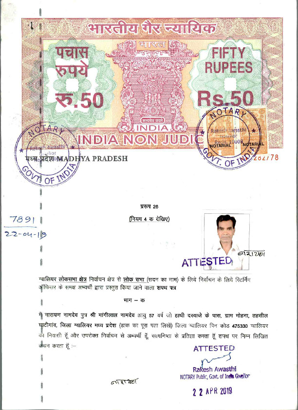 | மத்தியப் பிரதேசம் | குவாலியர் | Sunday, 12 May 2019 | Narayan Namdev(Affadavit) | Vivek Narayan Shejwalkar |
