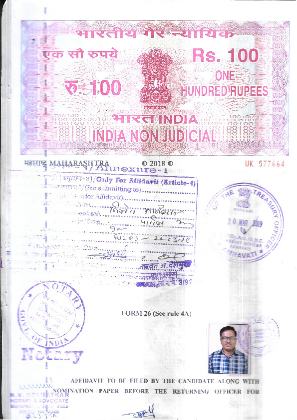 | மகாராட்டிரம் | அமராவதி (மகாராட்டிரம்) | Thursday, 18 April 2019 | Nilesh Anandrao Patil(Affadavit) | Navnit Ravi Rana |