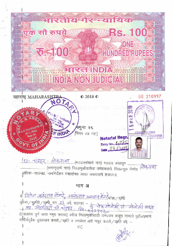 | மகாராட்டிரம் | Chandrapur | Thursday, 11 April 2019 | Nitesh Anandrao Dongre(Affadavit) | Balubhau Alias Suresh Narayan Dhanorkar |