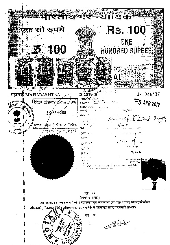 | மகாராட்டிரம் | புனே | Tuesday, 23 April 2019 | Prof. Nalawade Hanmant Mahadeo(Affadavit) | Girish Bhalchandra Bapat |