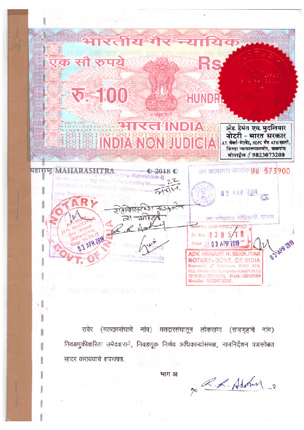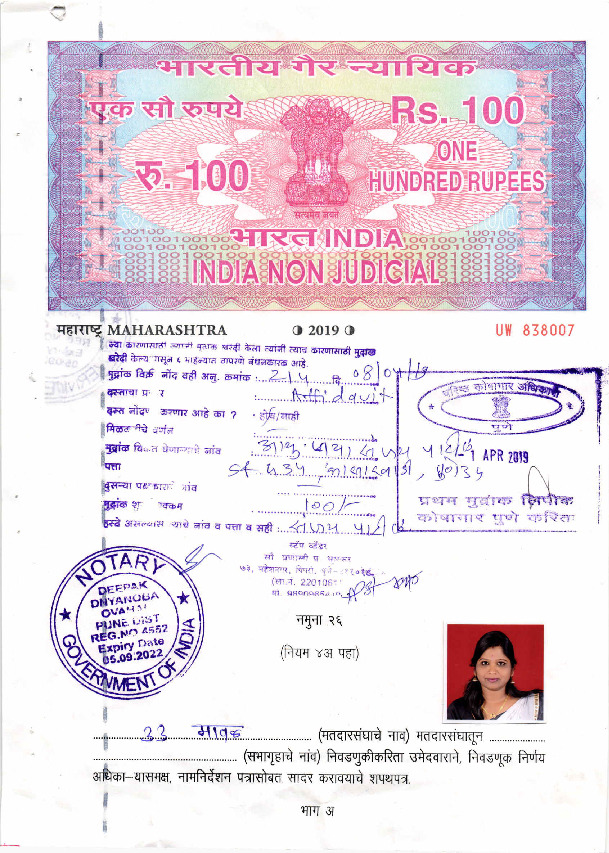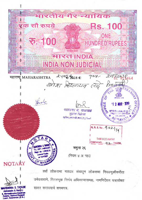 | மகாராட்டிரம் | நாக்பூர் | Thursday, 11 April 2019 | Adv. Vijaya Dilip Bagde(Affadavit) | Nitin Jairam Gadkari |