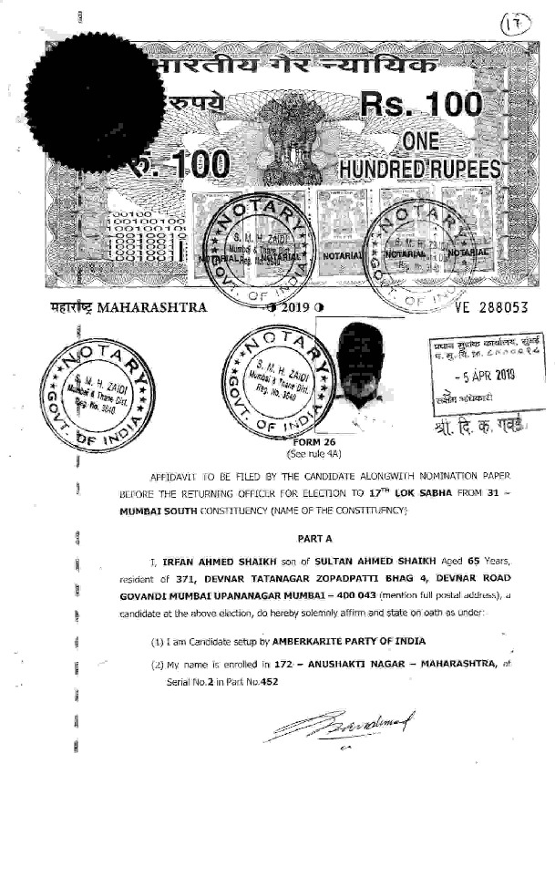 | மகாராட்டிரம் | தெற்கு மும்பை மக்களவைத் தொகுதி | Monday, 29 April 2019 | Irfan Shaikh(Affadavit) | Arvind Ganpat Sawant |