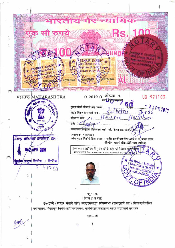 | மகாராட்டிரம் | தானே | Monday, 29 April 2019 | Sudhakar Narayan Shinde(Affadavit) | Rajan Baburao Vichare |