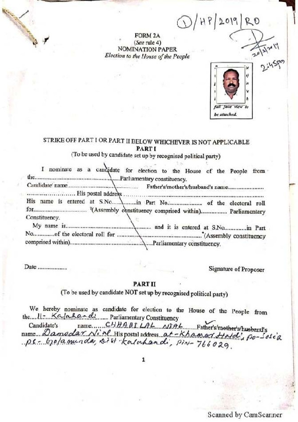 | ஒடிசா | Kalahandi | Thursday, 11 April 2019 | Chhabilal Nial(Affadavit) | Basanta Kumar Panda |
