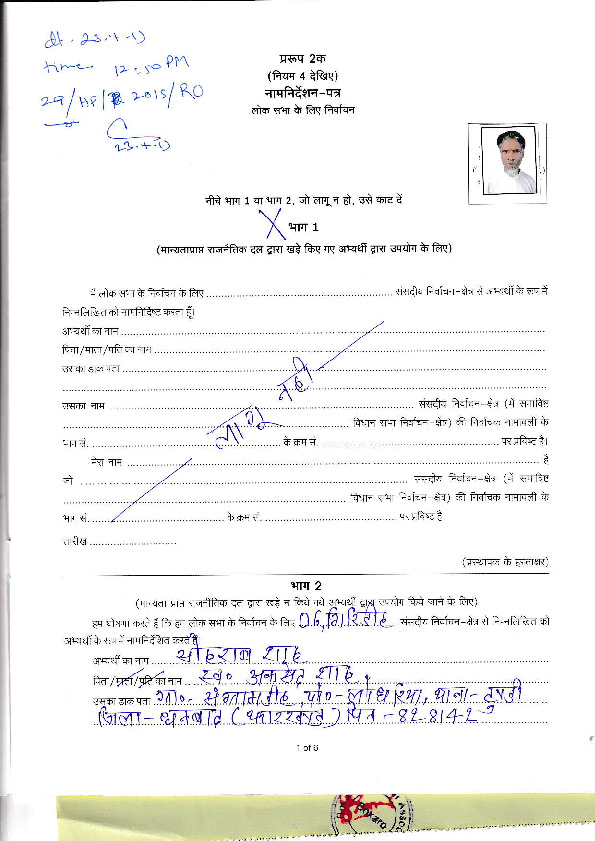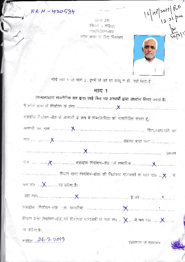 | சார்க்கண்ட் | Palamau | Monday, 29 April 2019 | Shyam Narayan Bhuian(Affadavit) | Vishnu Dayal Ram |