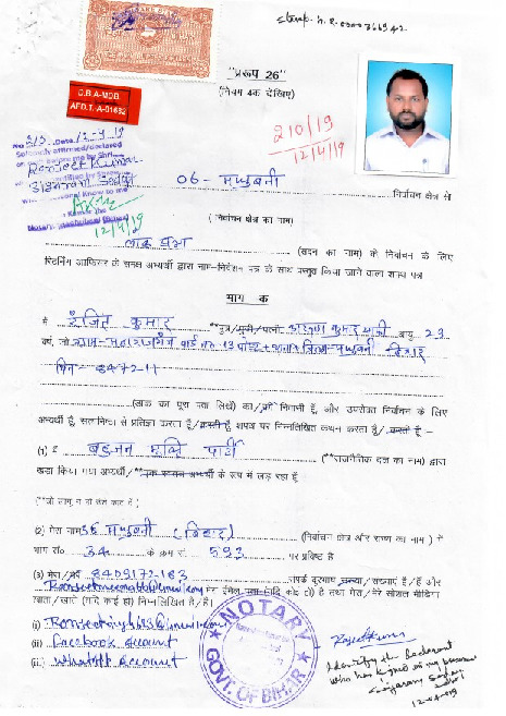 | பீகார் | Madhubani | Monday, 6 May 2019 | Ranjit Kumar(Affadavit) | Ashok Kumar Yadav |