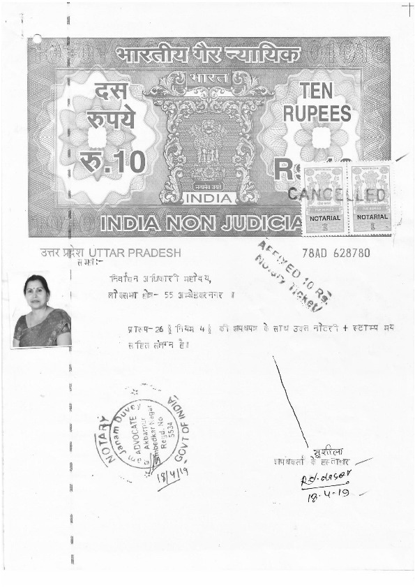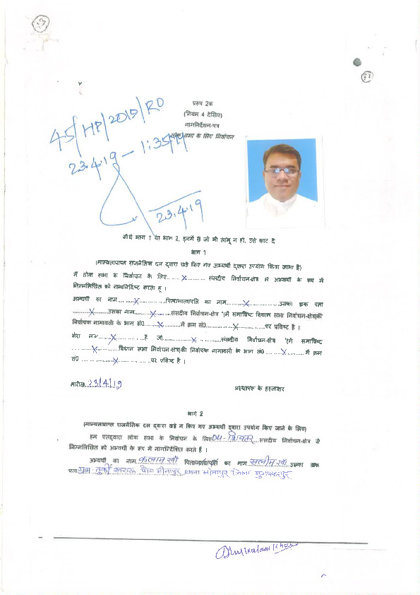 | உத்தரப் பிரதேசம் | Domariyaganj | Sunday, 12 May 2019 | Arjun Singh Lodhi(Affadavit) | Jagdambika Pal |