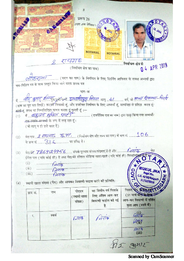 | சத்தீசுகர் | Janjgir-champa | Tuesday, 23 April 2019 | Lakhan Lal Chauhan Alias Lakhala Danav(Affadavit) | Guharam Ajgalley |