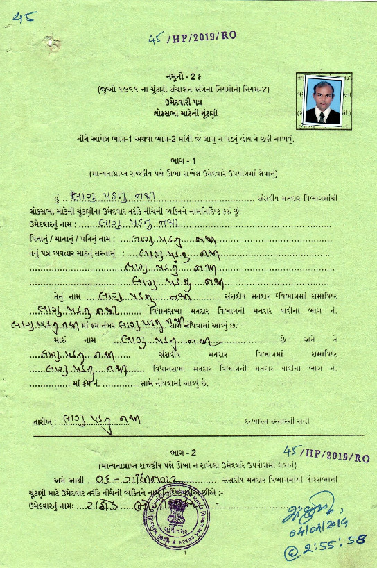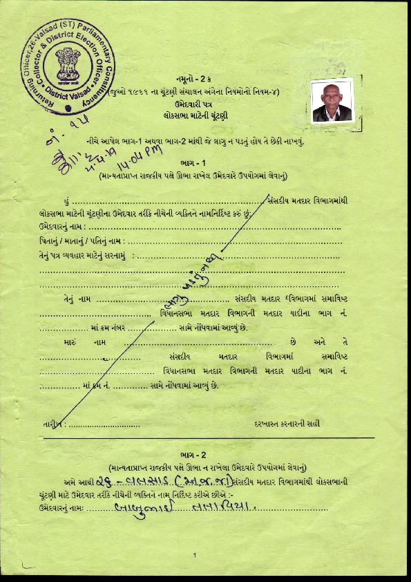 | குசராத்து | பரூச் | Tuesday, 23 April 2019 | Sukhdev Bhikhabhai Vasava(Affadavit) | Mansukhbhai Dhanjibhai Vasava |