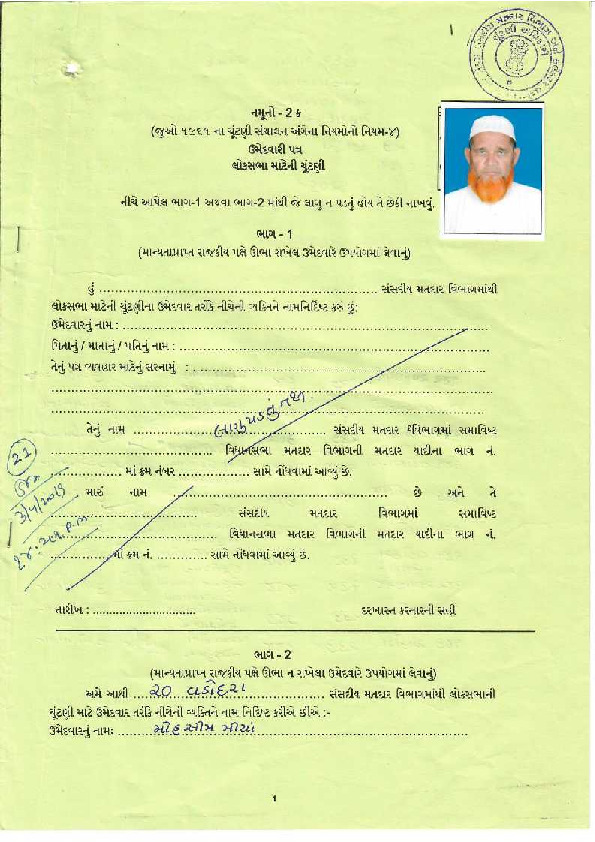 | குசராத்து | வடோதரா | Tuesday, 23 April 2019 | Mohsimmiya (saiyad Mohsin Bapu)(Affadavit) | Ranjanben Bhatt |