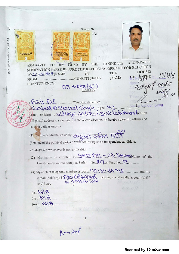 | அரியானா | Sirsa | Sunday, 12 May 2019 | Brij Pal(Affadavit) | Sunita Duggal |