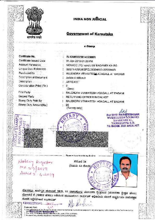 | கருநாடகம் | பாகல்கோட் | Tuesday, 23 April 2019 | Rajendra Venkatesh Adagall(Affadavit) | Gaddigoudar Parvatagouda Chandanagouda |