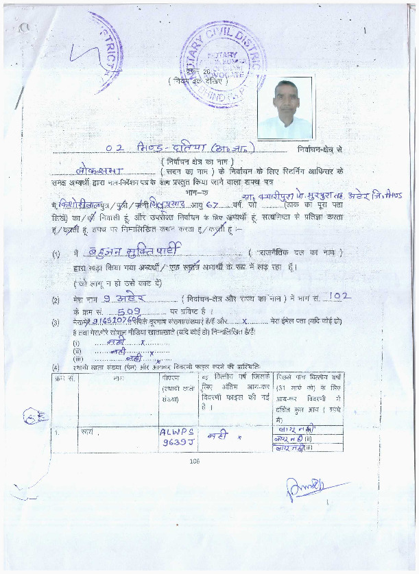 | மத்தியப் பிரதேசம் | Bhind | Sunday, 12 May 2019 | Kishorilal(Affadavit) | Sandhya Ray |